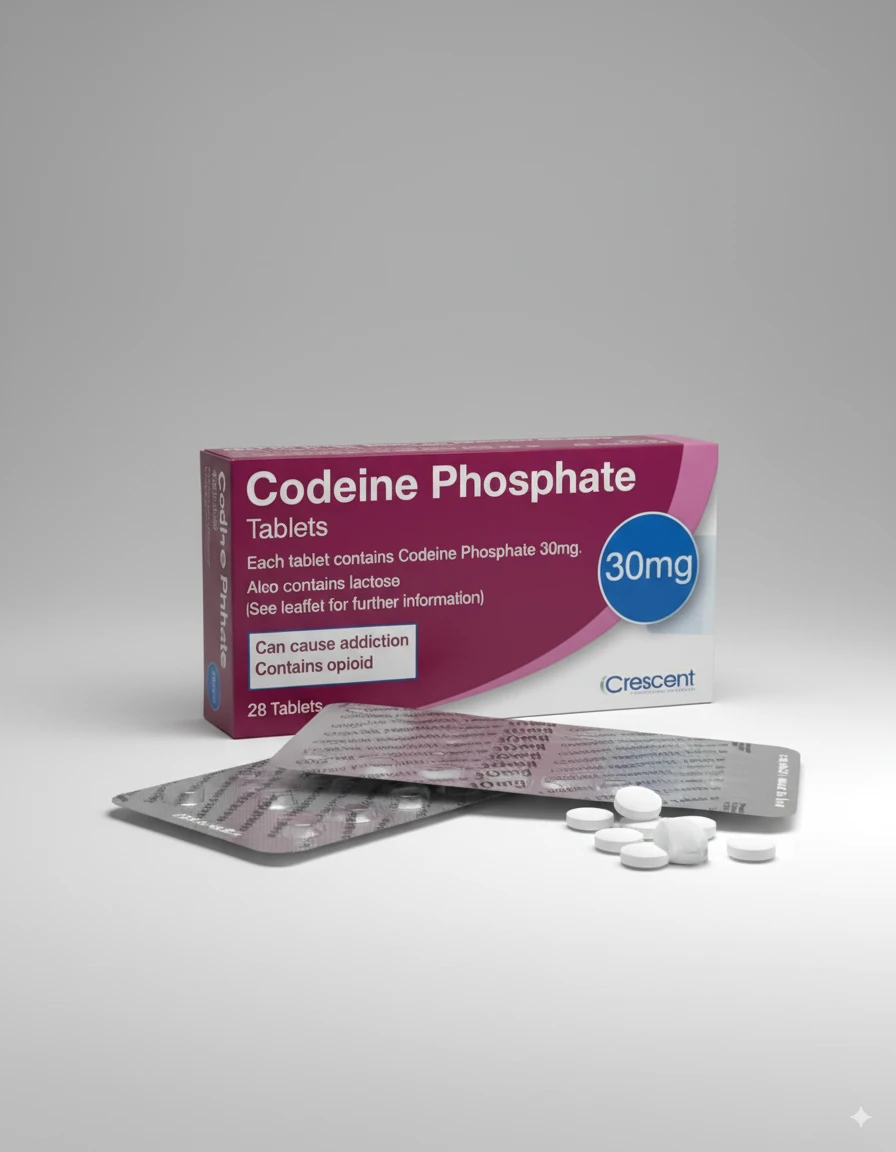 Codeine Phosphate 30mg consists of the active ingredient codeine – an opioid analgesic utilized to manage pain. This medication is designed to target pain receptors, This provides relief to individuals with discomfort.